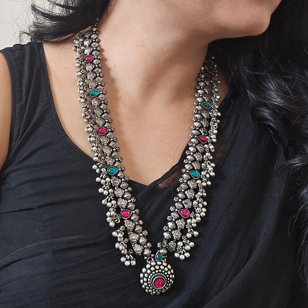 The SSAAZZ Chanderi Collection is a perfect blend of vintage charm, heritage craftsmanship, and contemporary style. Featuring jewellery crafted from German silver and Brass metal with an Oxidized Polish, this collection embodies timeless elegance. The intricate designs draw inspiration from India's rich artistic traditions, offering a vintage allure that resonates with heritage lovers. At the same time, the pieces are thoughtfully designed to suit Modern Aesthetics, making them Versatile for both Ethnic and Contemporary Ensembles. Each creation in the Chanderi Collection is a statement of enduring style and cultural sophistication.
