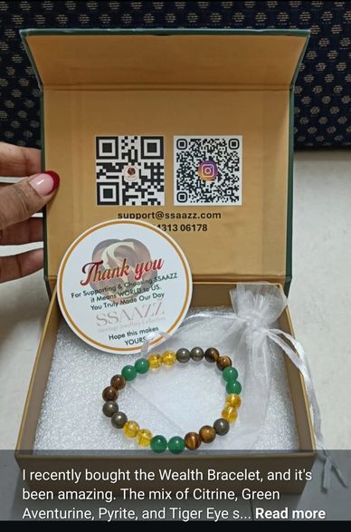 "I recently bought the Wealth Bracelet, and it's been amazing. The mix of Citrine, Green Aventurine, Pyrite, and Tiger Eye stones really helps me stay focused on my thought process. I've noticed that it's supporting my financial improvement plans and bringing good chances my way.